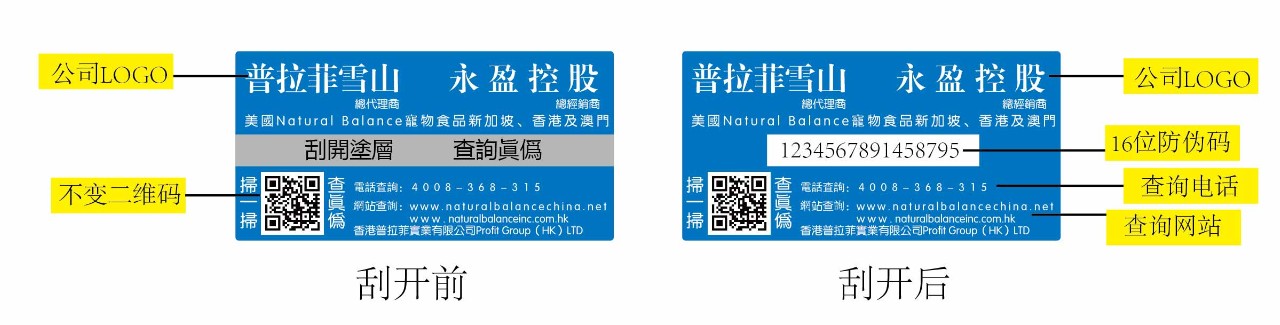 電碼防偽標(biāo)簽原理:每個標(biāo)簽上都有組密碼(16位或18位)而且每組密碼都不相同。電碼防偽標(biāo)簽相當(dāng)于給每件產(chǎn)品貼上獨一的身份證號碼。
